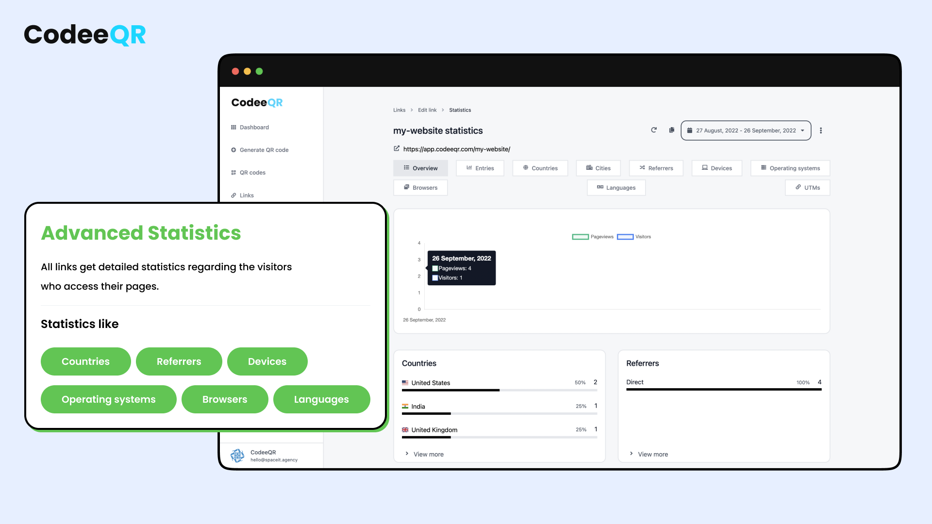 From the analytics dashboard, you will be able to see a range of data and statistics about the use and performance of your short link or QR code.